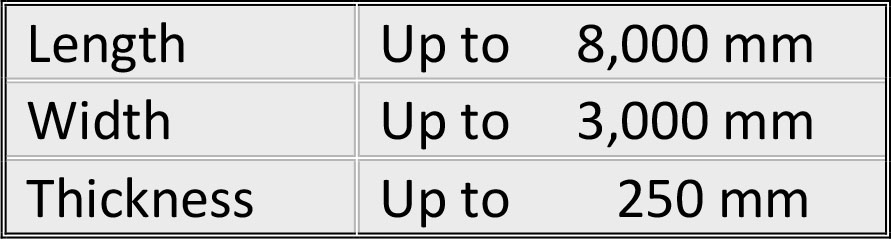 Solid slabs are used as structural deck components similar to hollow-core slabs. They are cast in individual forms with conventional reinforcing bars under ideal conditions, and contains the stiff reinforcement that is required to give stiffness once installed, as well as the flexural tension reinforcement, lengthways and crossways, that is required for final assembly. Sizes can vary to satisfy the structural requirements.